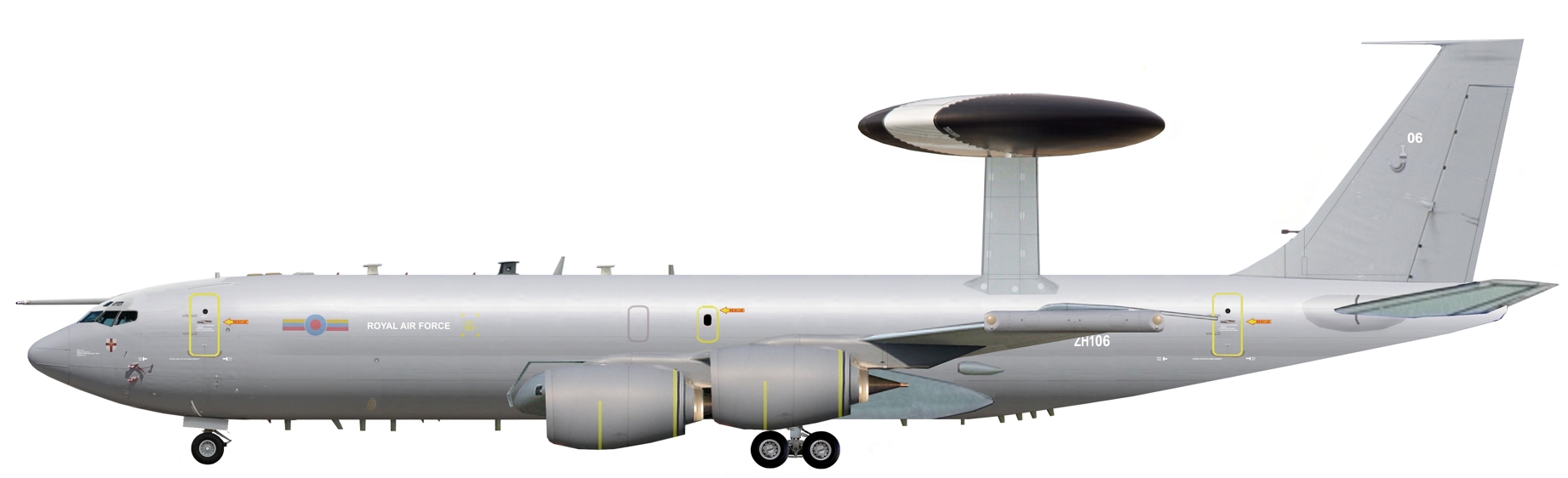The Boeing E-3 AWACS Sentry aircraft was based on the 707-320B airframe. This E-3D, cn 24114 is a purpose built AWACS airframe and typifies that production of the 707 was solely military from the end of 1979 until the last airframe was completed in 1992. The E-3 was built in five versions. E-3A, 3B, 3C, 3D, 3F. This particular version utilised the CFM56 turbofan engine. ZH106 is shown as she appeared on approach to RAF Abbington on the 13th of November 2005. It was these RAF E-3D aircraft which were the first European AWACS to be deployed to the Yugoslavian conflict in 1992.