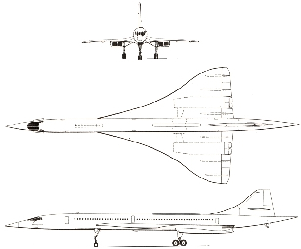 | Concorde 102 | 1969 | British Airways/Air France | 203ft 9in202ft 3.6 in (61.66 m) | 37ft 1 in (11.30 m) | 83ft 10in (25.56 m) | 3,856 ft² (358m²) |
